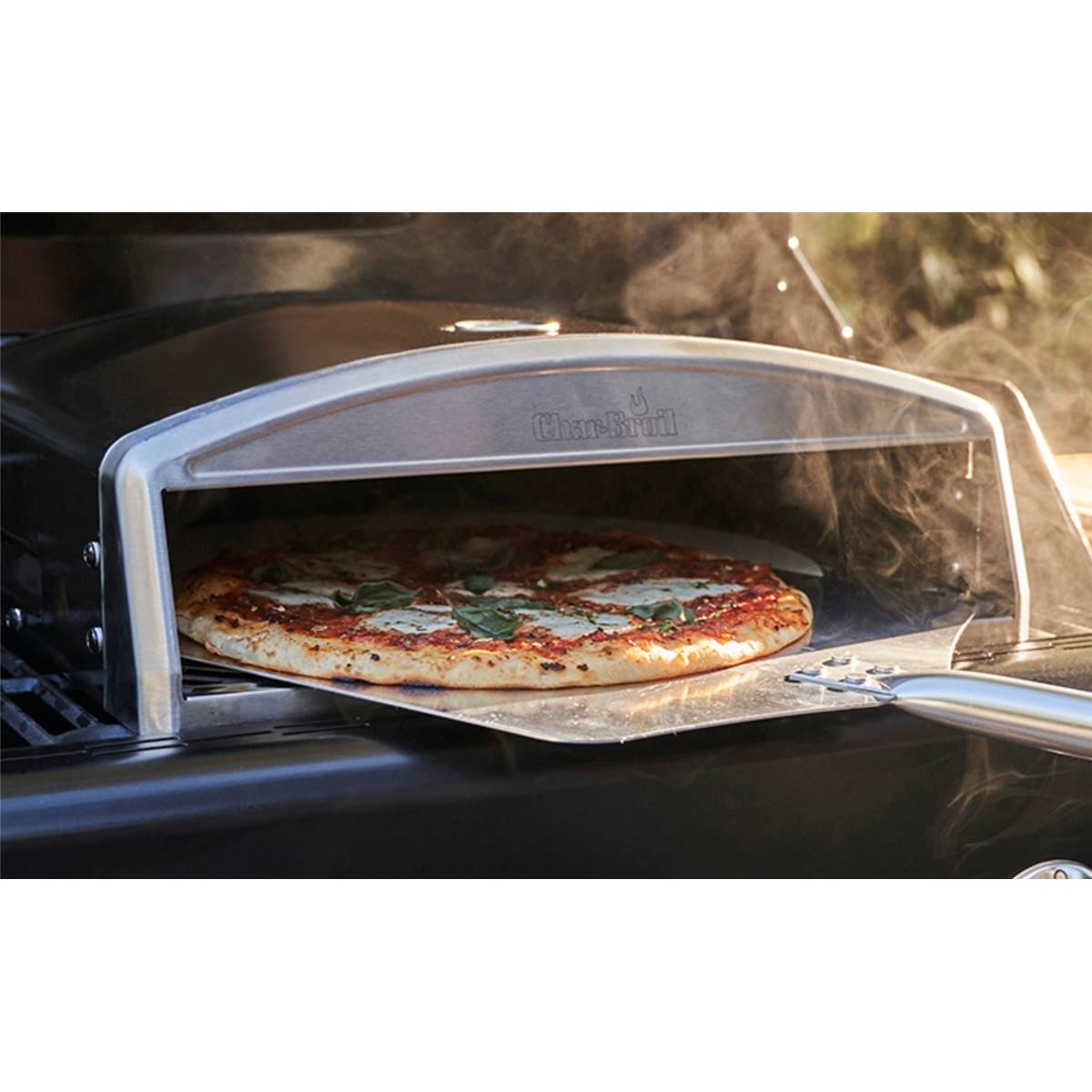 Livré avec une pierre à pizza de 38cm de diamètre ce four à pizza Char-Broil se positionne directement sur les plaques émettrices ou sur la grille de votre barbecue à gaz. Très simple à l'usage, vous pourrez ainsi faire cuire votre pizza maison juste à côté de vos grillades.