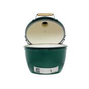 Le Big Green Egg est équipé d'une fenêtre coulissante de ventilation en inox, d'une grille inox, d'un thermomètre résistant aux intempéries et d'un évent supérieur en fonte multifonction.