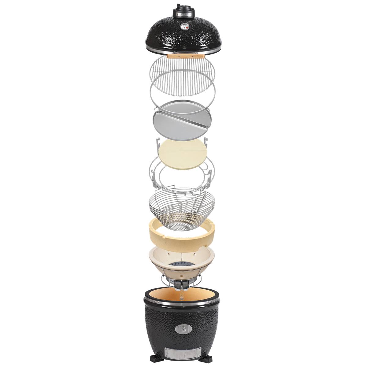facile à nettoyer. L'étanchéité, essentielle du Kamado est ainsi garantie pour le long terme. Les ferrures en acier inoxydable offrent un