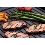 Réversible, la face striée pour marquer vos viandes et la face lisse pour faire revenir des aliments plus délicats.